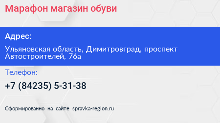 Марафон, магазин обуви по адресу Ульяновская область, Димитровград, проспект Автостроителей, 76а в дальнейшем Организация, размещена в следующих категориях: