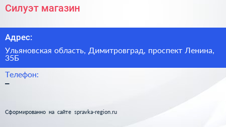 Силуэт, магазин по адресу Ульяновская область, Димитровград, проспект Ленина, 35Б в дальнейшем Организация, размещена в следующих категориях: