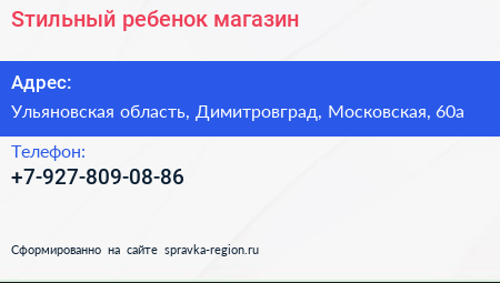 Sтильный ребенок, магазин по адресу Ульяновская область, Димитровград, Московская, 60а в дальнейшем Организация, размещена в следующих категориях: