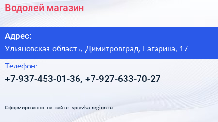 Водолей, магазин по адресу Ульяновская область, Димитровград, Гагарина, 17 в дальнейшем Организация, размещена в следующих категориях: