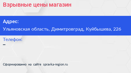 Взрывные цены, магазин по адресу Ульяновская область, Димитровград, Куйбышева, 226 в дальнейшем Организация, размещена в следующих категориях: