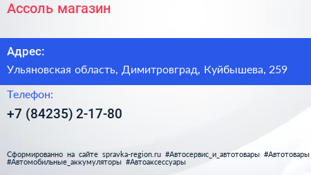 Ассоль, магазин по адресу Ульяновская область, Димитровград, Куйбышева, 259 в дальнейшем Организация, размещена в следующих категориях: