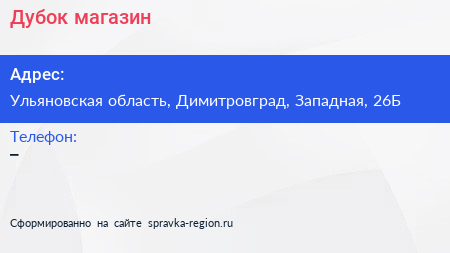 Дубок, магазин по адресу Ульяновская область, Димитровград, Западная, 26Б в дальнейшем Организация, размещена в следующих категориях: