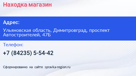 Находка, магазин по адресу Ульяновская область, Димитровград, проспект Автостроителей, 47Б в дальнейшем Организация, размещена в следующих категориях:
