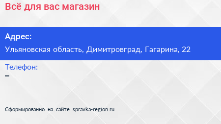 Всё для вас, магазин по адресу Ульяновская область, Димитровград, Гагарина, 22 в дальнейшем Организация, размещена в следующих категориях: