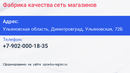 Фабрика качества, сеть магазинов по адресу Ульяновская область, Димитровград, Ульяновская, 72Б в дальнейшем Организация, размещена в следующих категориях: