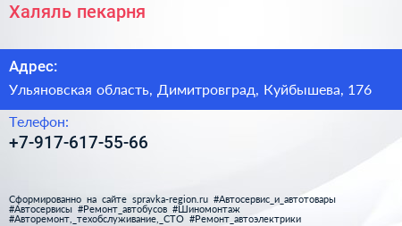 Халяль, пекарня по адресу Ульяновская область, Димитровград, Куйбышева, 176 в дальнейшем Организация, размещена в следующих категориях: