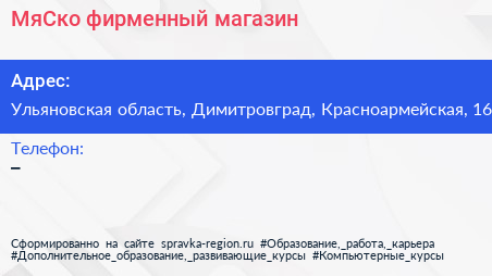 МяСко, фирменный магазин по адресу Ульяновская область, Димитровград, Красноармейская, 16 в дальнейшем Организация, размещена в следующих категориях: