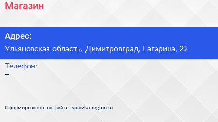 Магазин по адресу Ульяновская область, Димитровград, Гагарина, 22 в дальнейшем Организация, размещена в следующих категориях: