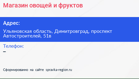 Магазин овощей и фруктов по адресу Ульяновская область, Димитровград, проспект Автостроителей, 51в в дальнейшем Организация, размещена в следующих категориях: