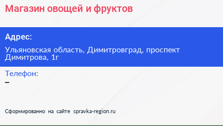 Магазин овощей и фруктов по адресу Ульяновская область, Димитровград, проспект Димитрова, 1г в дальнейшем Организация, размещена в следующих категориях: