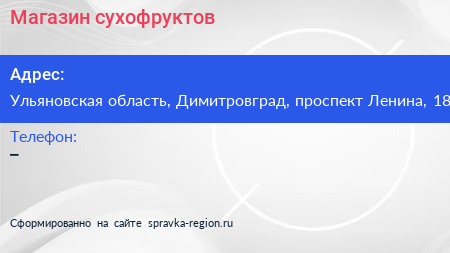 Магазин сухофруктов по адресу Ульяновская область, Димитровград, проспект Ленина, 18 в дальнейшем Организация, размещена в следующих категориях: