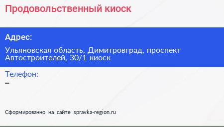 Продовольственный киоск по адресу Ульяновская область, Димитровград, проспект Автостроителей, 30/1 киоск в дальнейшем Организация, размещена в следующих категориях: