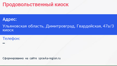 Продовольственный киоск по адресу Ульяновская область, Димитровград, Гвардейская, 47а/3 киоск в дальнейшем Организация, размещена в следующих категориях: