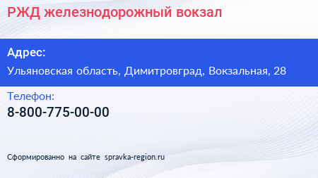 РЖД, железнодорожный вокзал по адресу Ульяновская область, Димитровград, Вокзальная, 28 в дальнейшем Организация, размещена в следующих категориях: