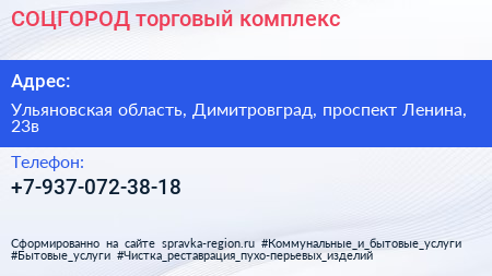 СОЦГОРОД, торговый комплекс по адресу Ульяновская область, Димитровград, проспект Ленина, 23в в дальнейшем Организация, размещена в следующих категориях: