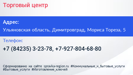 Торговый центр по адресу Ульяновская область, Димитровград, Мориса Тореза, 5 в дальнейшем Организация, размещена в следующих категориях: