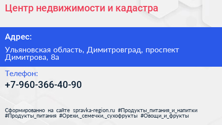 Центр недвижимости и кадастра по адресу Ульяновская область, Димитровград, проспект Димитрова, 8а в дальнейшем Организация, размещена в следующих категориях: