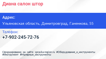Диана, салон штор по адресу Ульяновская область, Димитровград, Ганенкова, 55 в дальнейшем Организация, размещена в следующих категориях:
