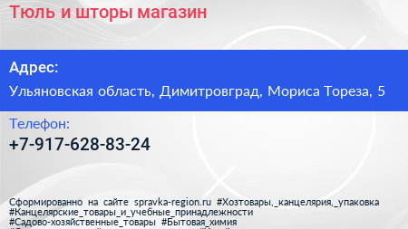 Тюль и шторы, магазин по адресу Ульяновская область, Димитровград, Мориса Тореза, 5 в дальнейшем Организация, размещена в следующих категориях: