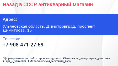 Назад в СССР, антикварный магазин по адресу Ульяновская область, Димитровград, проспект Димитрова, 15 в дальнейшем Организация, размещена в следующих категориях: