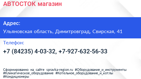 АВТОСТОК, магазин по адресу Ульяновская область, Димитровград, Свирская, 41 в дальнейшем Организация, размещена в следующих категориях: