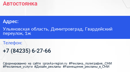 Автостоянка по адресу Ульяновская область, Димитровград, Гвардейский переулок, 1ж в дальнейшем Организация, размещена в следующих категориях: