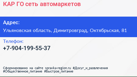 КАР-ГО, сеть автомаркетов по адресу Ульяновская область, Димитровград, Октябрьская, 81 в дальнейшем Организация, размещена в следующих категориях: