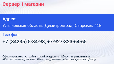 Сервер-1, магазин по адресу Ульяновская область, Димитровград, Свирская, 41Б в дальнейшем Организация, размещена в следующих категориях:
