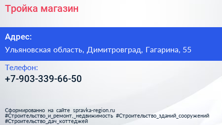 Тройка, магазин по адресу Ульяновская область, Димитровград, Гагарина, 55 в дальнейшем Организация, размещена в следующих категориях: