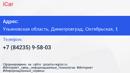 iCar по адресу Ульяновская область, Димитровград, Октябрьская, 1 в дальнейшем Организация, размещена в следующих категориях: