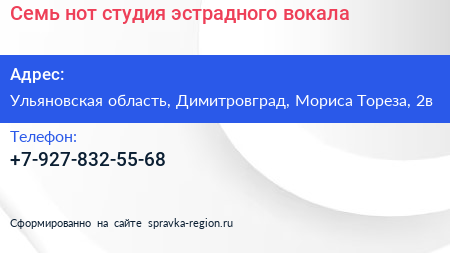 Семь нот, студия эстрадного вокала по адресу Ульяновская область, Димитровград, Мориса Тореза, 2в в дальнейшем Организация, размещена в следующих категориях: