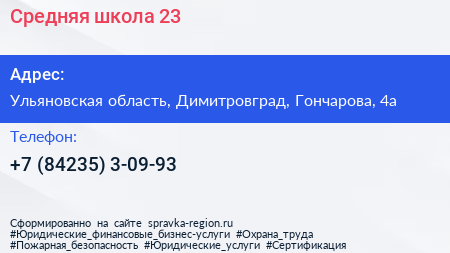 Средняя школа №23 по адресу Ульяновская область, Димитровград, Гончарова, 4а в дальнейшем Организация, размещена в следующих категориях: