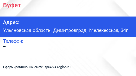 Буфет по адресу Ульяновская область, Димитровград, Мелекесская, 34г в дальнейшем Организация, размещена в следующих категориях: