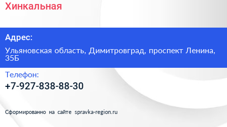 Хинкальная по адресу Ульяновская область, Димитровград, проспект Ленина, 35Б в дальнейшем Организация, размещена в следующих категориях: