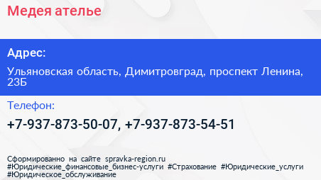 Медея, ателье по адресу Ульяновская область, Димитровград, проспект Ленина, 23Б в дальнейшем Организация, размещена в следующих категориях: