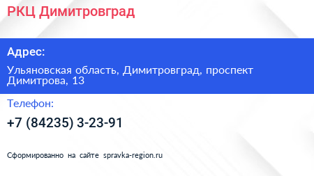 РКЦ-Димитровград по адресу Ульяновская область, Димитровград, проспект Димитрова, 13 в дальнейшем Организация, размещена в следующих категориях: