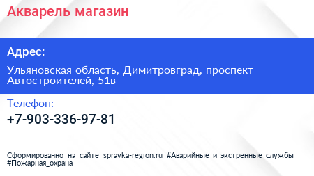 Акварель, магазин по адресу Ульяновская область, Димитровград, проспект Автостроителей, 51в в дальнейшем Организация, размещена в следующих категориях: