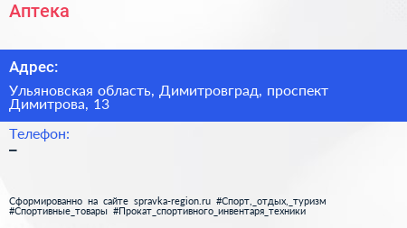 Аптека по адресу Ульяновская область, Димитровград, проспект Димитрова, 13 в дальнейшем Организация, размещена в следующих категориях: