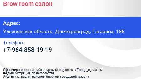 Brow room, салон по адресу Ульяновская область, Димитровград, Гагарина, 18Б в дальнейшем Организация, размещена в следующих категориях: