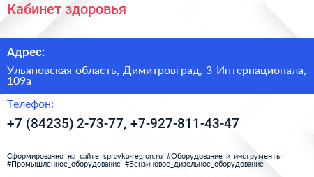 Кабинет здоровья по адресу Ульяновская область, Димитровград, 3 Интернационала, 109а в дальнейшем Организация, размещена в следующих категориях: