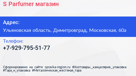 S Parfumer, магазин по адресу Ульяновская область, Димитровград, Московская, 60а в дальнейшем Организация, размещена в следующих категориях: