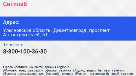 Ситилаб по адресу Ульяновская область, Димитровград, проспект Автостроителей, 51 в дальнейшем Организация, размещена в следующих категориях: