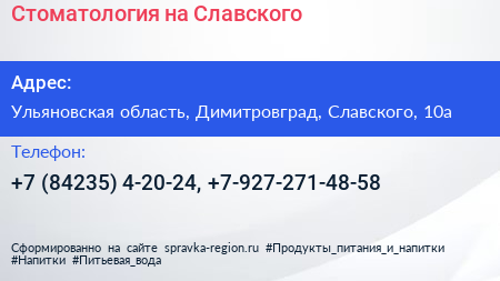 Стоматология на Славского по адресу Ульяновская область, Димитровград, Славского, 10а в дальнейшем Организация, размещена в следующих категориях: