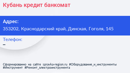 Кубань кредит, банкомат по адресу 353202, Краснодарский край, Динская, Гоголя, 145 в дальнейшем Организация, размещена в следующих категориях: