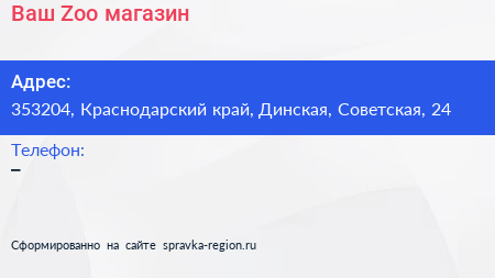 Ваш Zoo, магазин по адресу 353204, Краснодарский край, Динская, Советская, 24 в дальнейшем Организация, размещена в следующих категориях: