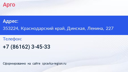 Арго по адресу 353224, Краснодарский край, Динская, Ленина, 227 в дальнейшем Организация, размещена в следующих категориях: