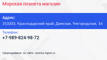 Морская планета, магазин по адресу 353203, Краснодарский край, Динская, Ужгородская, 16 в дальнейшем Организация, размещена в следующих категориях: