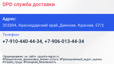 DPD, служба доставки по адресу 353204, Краснодарский край, Динская, Красная, 57/1 в дальнейшем Организация, размещена в следующих категориях: