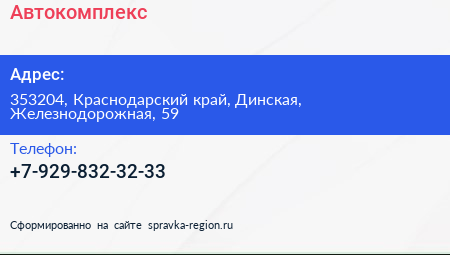 Автокомплекс по адресу 353204, Краснодарский край, Динская, Железнодорожная, 59 в дальнейшем Организация, размещена в следующих категориях: